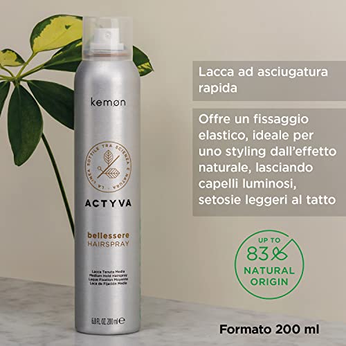 Kemon - Actyva Bellessere Hairspray, Lacca per Capelli ad Asciugatura Rapida con Effetto Illuminante Naturale - 200 ml
