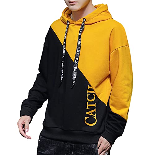 KENAIJING Felpa con Cappuccio Uomo, Manica Lunga Hood Felpa Uomo (Giallo, M)