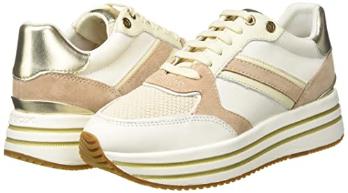 Geox D Kency B, Scarpe da Ginnastica Donna, Bianco Beige Off White Dk Skin, 41 EU
