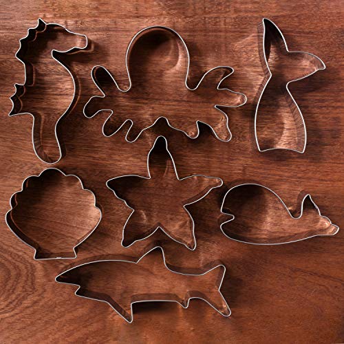 KENIAO Set di Formine Biscotti Sirena Creatura Oceanica Taglierina - 7 Pezzi - Coda Sirena, Cavalluccio Marino, Stella Marina, Squalo, Balena, Polpo e Conchiglia - Acciaio Inossidabile