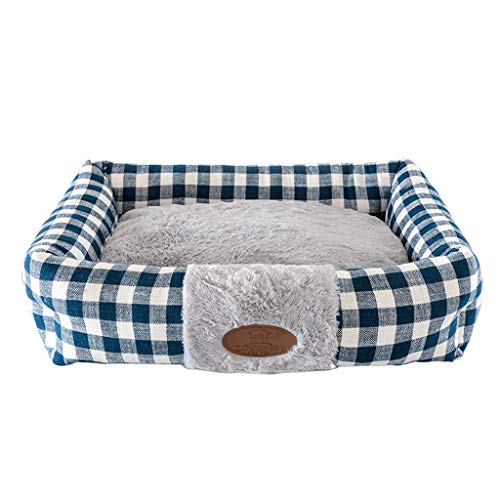 Kenmeko Cuccia per Cane con Copertura in Peluche, Cuscino casa di Animali da Compagnia Inverno Caldo Domestico Tessuto Reticolo Quadrato Rimovibile e Lavabile (70 * 55cm,Blu)