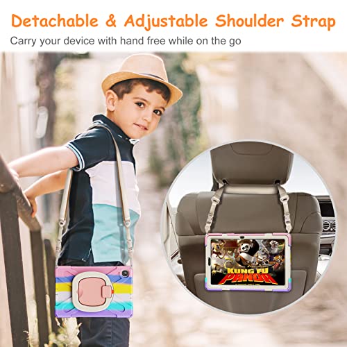 Tracolla rimovibile e regolabile: la tracolla portatile ti aiuta a trasportare comodamente il tablet quando sei al lavoro, in viaggio o all'aperto. Può essere attaccato a qualsiasi due fori nel coperchio del PC per trasportare il tuo dispositivo verticalmente o orizzontalmente come una borsa a tracolla, puoi persino appenderlo dietro il poggiatesta del seggiolino auto o dove vuoi. La lunghezza della tracolla può essere regolata per adattarsi ad adulti o bambini.
