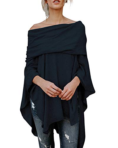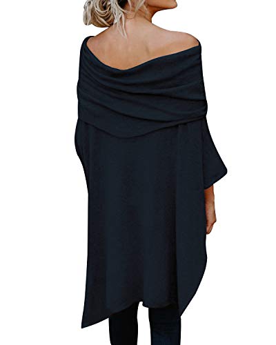 Kenoce Pullover off Spalla Donna Manica Lunga Tinta Unita Maglione Elegant Chic T-Shirt Autunno Inverno Sweatshirt Tunica Maglietta Top B-Blu Scuro 2XL