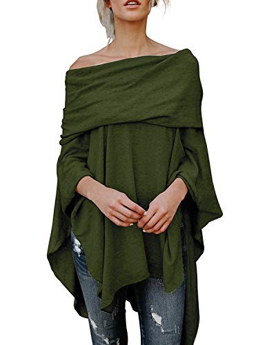 Kenoce Pullover off Spalla Donna Manica Lunga Tinta Unita Maglione Elegant Chic T-Shirt Autunno Inverno Sweatshirt Tunica Maglietta Top B-Verde Militare XL