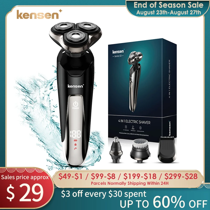 Kensen 4 In 1 Electric Shaver Beard Trimmer Rechargeable Razor Beard Trimmer Shaver For Men Portable Shaving Beard Facial Brush