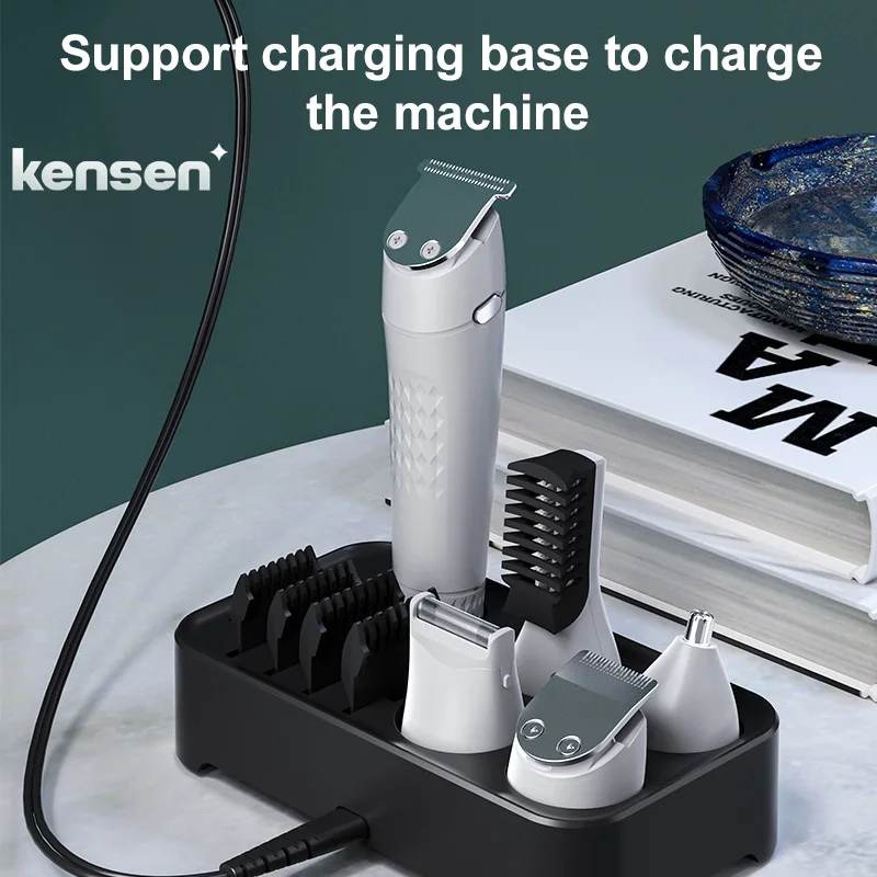 Kensen 5 in 1 Hair Trimmer Grooming Wet Dry Beard Shaving Machine Charging Base Facial Body Electric Shaver Rechargeable