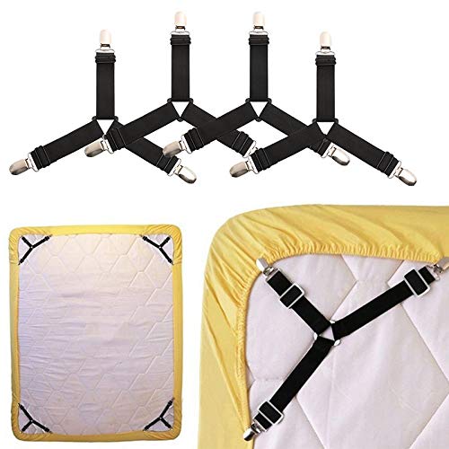 Kentop, Set di 4 mollette con elastici regolabili in metallo per lenzuola con angolo, colore bianco