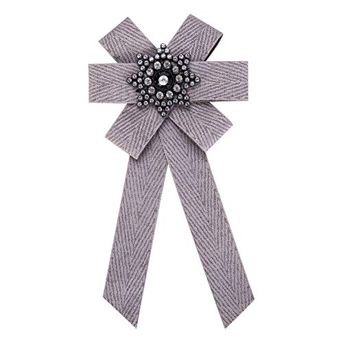 Kentop Spilla da donna a forma di fiocco, con strass e colletto, stile vintage, per banchetti, feste 20.4×10.5cm Grau