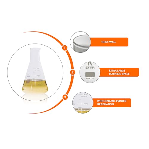 KENZIUM - Pack 3 x Beuta Erlenmeyer | Formati: 150, 250 e 500 ml | Vetro Borosilicato 3.3 | Graduazione Stampata | Collo Stretto | Ideale Laboratorio, Scuola
