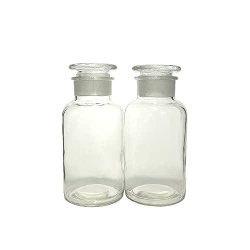 KENZIUM - Pack 2 x Bottiglie per Reagenti | Volume: 2 x 500 ml | Vetro Trasparente | Collo Largo con Tappo di Vetro Smerigliato | Ideale per Laboratorio ed Educazione