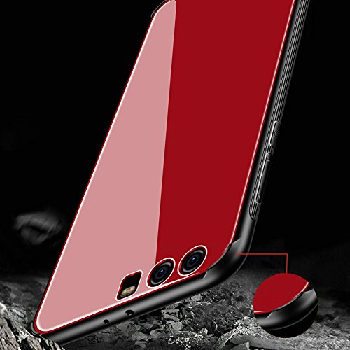 Kepuch Quartz Cover per Huawei P10 Plus - TPU Morbido + Custodia Posteriore in Vetro Temperato Case per Huawei P10 Plus - Rosso