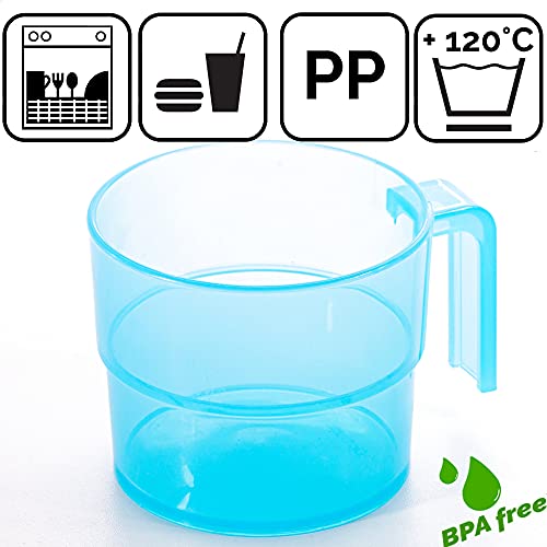 Kerafactum Set di 6 bicchieri con manico, per campeggio, mensa, ideale per picnic, barca, tenda, caravan, lavabile in lavastoviglie, impilabile, 0,3 litri. Mug colore blu.