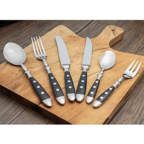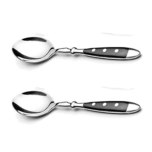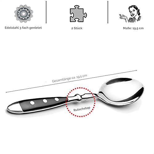 Kerafactum Set di 2 cucchiai da minestra Loeffel per zuppe, tavola stufati, cucchiaini cucina rivettati, posate in acciaio inox con manici neri stile rustico, bistro estensibile