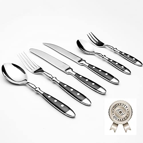 ✔️ Marchio di qualità della casa Kerafactum. 2 cucchiai da tavola, set di cucchiai, 3 posate rivettate con manici neri, set di design espandibile nero