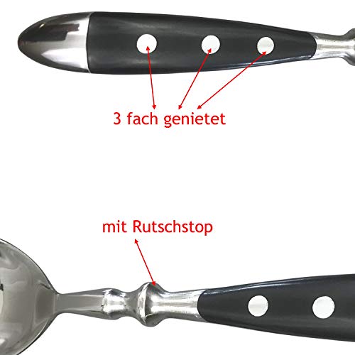 Marca di qualità della casa Kerafactum 6 cucchiai da tavola, cucchiai da zuppa, cucchiai da zuppa, 3 posate rivettate con manici neri, set di design espandibile nero.