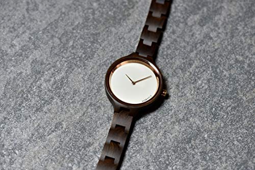 Legno ottenuto da gestione forestale sostenibile: con il tempo il Black Chacate sviluppa una tonalita' di colore individuale. L'orologio e' protetto da una laccatura naturale e impermeabile fino a 3 atmosfere