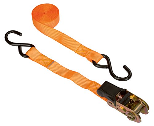 Kerbl 37991 - Set di 4 cinghie a cricchetto, colore arancione, lunghezza 5 m, larghezza 25 mm, forza di trazione 250 kg, per fissaggio del carico)