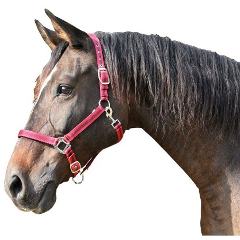 Kerbl Mustang Horse Head. Questo prodotto è una testa di alta qualità con un modello sottile che ha musei regolabili e terace con fibbie ardillón. Realizzato in poliammide resistente all'usura e con forti cuciture. Proprietà: testa di grande qualità resistente. Chiusura facile mediante carabiniere. Con un modello sottile. Colore rosso. Dimensione: 2 per Purasangre (COB). Presentazione: 1 unità