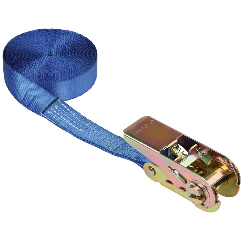 Descrizione Kerbl - Cinghia a cricchetto Cricchetto a pressione galvanizzato Impregnato in poliuretano per una Allungamento: massimo 7%. Dettagli tecnici: Certificazione GS a norma DIN EN 12195-2. Materiale: tessuto di poliestere. Colore: blu. Lunghezza 5 m Larghezza: 25 mm. Forza di trazione diretta (LC): 400 kg. Forza di trazione consentita (LC): 800 kg. Forza di precarico STF: 72 daN. Contenuto della Kerbl - Cinghia a cricchetto