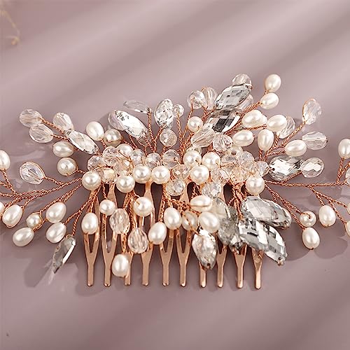 Kercisbeauty Fermacapelli vintage con cristalli e perle, con pettine, da sposa e damigella