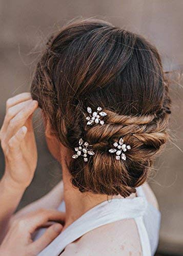 Kercisbeauty Set di 3 forcine semplici per capelli, realizzate a mano, per sposa e damigelle, a forma di fiore, con strass e perle, accessorio per capelli lunghi e ricci o chignon, per nozze, balli