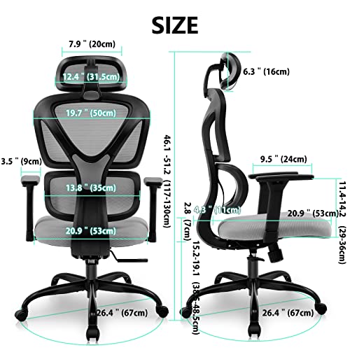 [Sedia da ufficio traspirante e confortevole] - Sedia da ufficio ergonomica con schienale e sedile in rete per mantenere la circolazione dell'aria ed evitare la sudorazione e l'attaccamento. Il cuscino in spugna naturale ad alta densità è morbido e traspirante. Risparmiati il dolore di lunghi periodi di seduta.