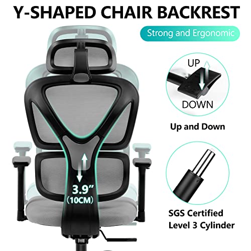 KERDOM Sedia da Ufficio Ergonomica, Poltrona Ufficio con Braccioli Pieghevoli e Poggiatesta Oscillante, Poltrona Girevole con Supporto Lombare