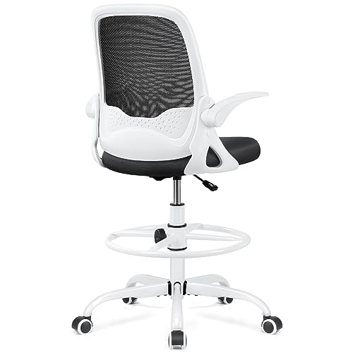 KERDOM Sedia da ufficio ergonomica, da scrivania con braccioli pieghevoli, sedia girevole regolabile in altezza, con anello poggiapiedi, con portata di 100 kg, 933-Z WHITE