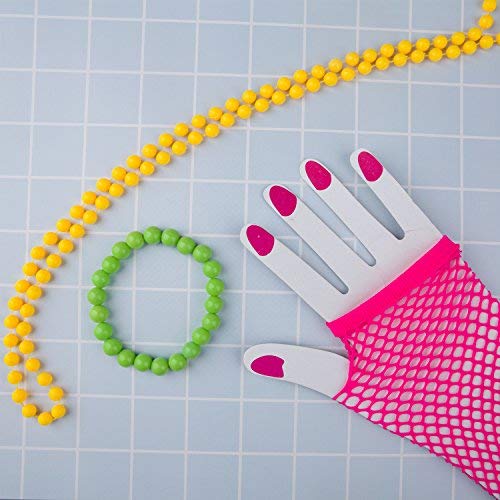 Keriber 10 Pezzi in Plastica Neon Bead Necklaces Neon Bracciali Long Fishnet Guanti Set 80s Accessori per Vestiti da Festa, Multicolore