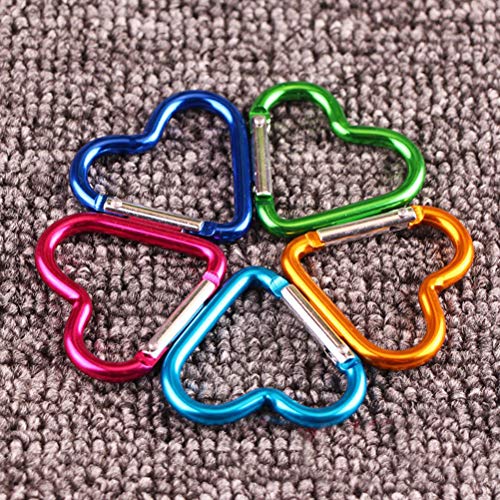 Stile: non bloccabile con una chiusura a molla per aprirsi e agganciare gli oggetti. Moschettone a forma di cuore, confezione da 10 pezzi, disponibile in colori assortiti casuali.