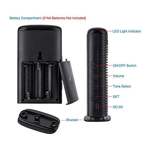Il ricevitore ha un interruttore on/off e un controllo del volume. 16 suoni di avviso sono selezionabili e ogni melodia will Play Set per una durata, qualche ripetizione e suono off per 20S, alcuni sono semplice come campanello suona e durano solo per pochi secondi. Durata dipende dalla scelta del Melody voi desiderato. 5 livelli di volume fino a 100 dB (incluso), insieme con l' indicatore LED luce lampeggiante muto, fantastico per dare un allarme visivo che qualcuno sta arrivando la vostra porta o la strada privata.