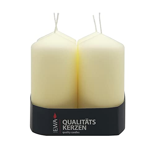 Ewa Kerzen Set di 4 candele a colonna, 60 x 120 mm, colore avorio, lunga durata 32 ore, candele di cera antigoccia, senza profumo, 4 pezzi (1 x 4)