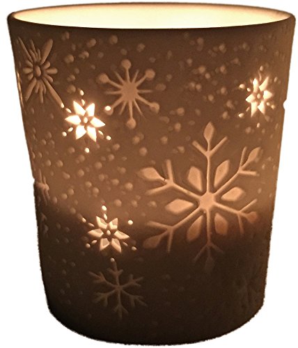 KERZENFARM Plaristo Fiocco di Neve, portacandela votiva-Tazza in Porcellana, Colore: Bianco, Altezza 6 cm