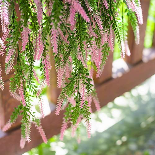 Kesio - Bouquet di lavanda artificiale con cesto di piante rampicanti da appendere, per matrimoni, feste, casa, giardino, decorazione per interni ed esterni, colore: rosa