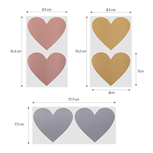 Forme e dimensioni: questi adesivi sono a forma di cuore, le dimesioni sono circa di 8,5x7,5cm.