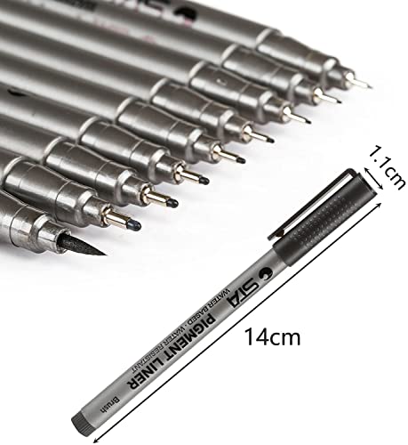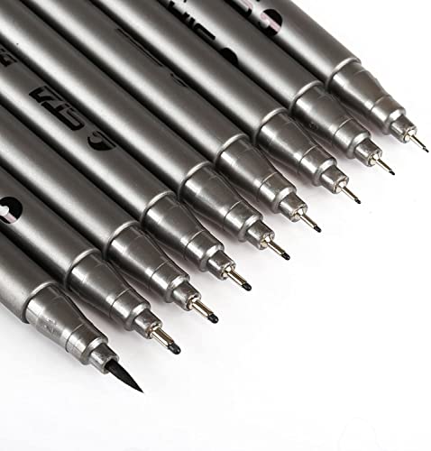 Varietà: 9 penne con punta di 9 dimensioni (0,05mm, 0,1mm, 0,2mm, 0,3mm, 0,4mm, 0,5mm, 0,6mm, 0,8mm e un pennello) possono soddisfare le divere esigenze