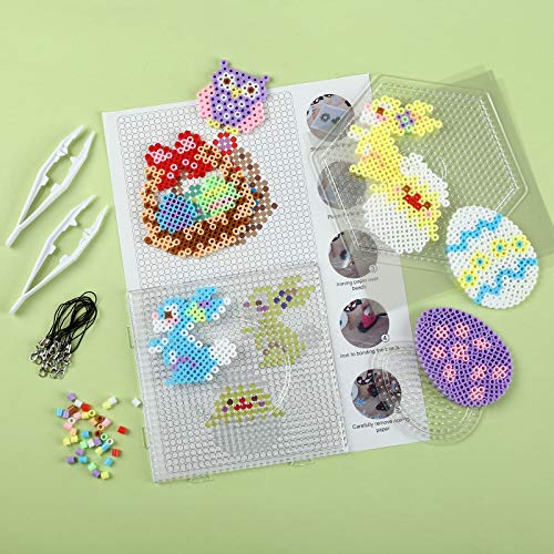 Grande quantità: il set di perline da stirare include 2000 perline di 9 colori, 3 pegboard, 8 disegni pasquali, 2 pinzette, 5 pellicole trasparenti e 10 cordini.