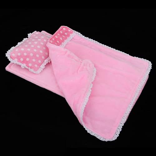 KESOTO 3 Pezzi di Biancheria da Letto in Pizzo Rosa Set di Cuscini, Lenzuola E Piumoni per Bambole da 25cm con Decorazioni per Bambole Mellchan