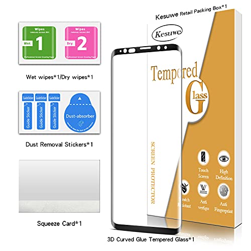 Kesuwe Vetro Temperato per Samsung Galaxy S9 [1 Pezzi], [Curva 3D Copertura Completa], 9H Durezza, Alta Sensibilità, Alta Definizione, Anti-Graffo, Anti-Impronta, Senza Bolle