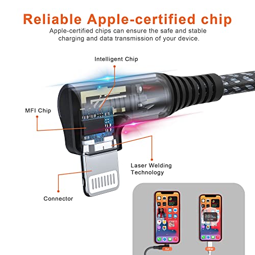 【Cavo Light ning ad angolo retto 3M】: design ad angolo di 90 gradi, rende il tuo telefono facile da collegare con il connettore ad angolo retto, riducendo l'uso del cavo piegato, proteggendo l'interfaccia del dispositivo e prolungando la durata. Extra lungo 10 piedi abbastanza per molte occasioni, ricarica dispositivi di illuminazione in camera da letto, divano, cucina, auto e ufficio con molto meno restrizione sulla lunghezza.