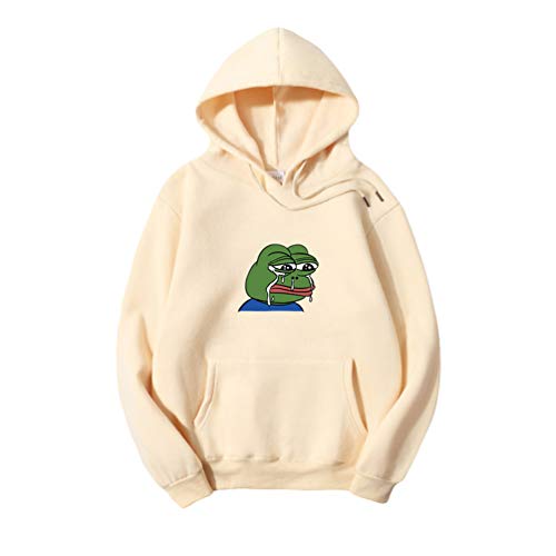 Ketamyy Uomo Donna Felpe con Cappuccio Invernali Cotone Pile Casual Pullover Pepe The Sad Rana Stampate Hoodie Manica Lunga con Tasca Larghe Morbido Moda Top Beige/Rana Triste S