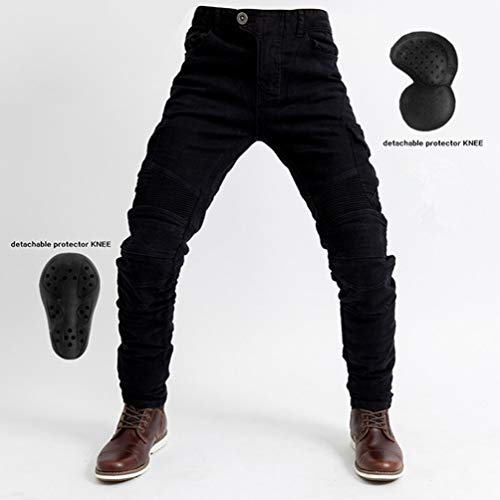 Ketamyy Pantaloni in Denim Moto per Tutte Stagioni Pantaloni Jeans Elasticizzati con 4 Cuscinetti Protettivi Rinforzati Slim Fit Durevole Resistente Cadute A Prova di Vento Multi Tasche Nero 2XL