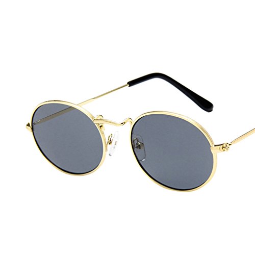 Ketamyy Unisex Retro Cornice In Metallo Uomini E Donne Eleganti Classico Occhiali Da Sole Rotondi Grigio/Oro Cornice Taglia Unica