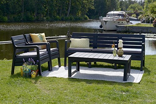 Keter 232300 effetto vimini Allibert Lyon/Tavolino da pranzo 2 in 1, colore: nero/grafite