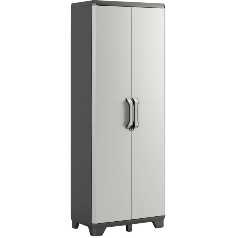 Siete alla ricerca di un mobile che vi aiuti a ottimizzare lo spazio in garage? Non indulgete oltre, questo compatto e pratico armadietto multiuso Gear della Keter farà sicuramente al caso vostro! Con un elegante design a colori contrastanti e motivo con venature del legno sulla superficie, questo mobile sarà sicuramente al centro dell'attenzione nel vostro garage. Dotato di 3 ripiani regolabili, ciascuno dalla capacità massima di 10 kg, uno scomparto alto e robuste maniglie con serratura dall'aspetto in metallo, questo armadietto risulta perfetto per riporre in modo efficiente svariati accessori. Inoltre, i suoi piedini regolabili e i piedini extra consentono di creare una stazione personalizzata per la conservazione di oggetti nel vostro garage che si adatterà alle vostre esigenze. Fissare l'armadio al muro (viti e tasselli non sono inclusi). Scegliere il tassello in base alla superficie. Colore: Nero e grigio Materiale: Polipropilene Dimensioni: 68 x 39 x 182 cm (L x P x A) Con 3