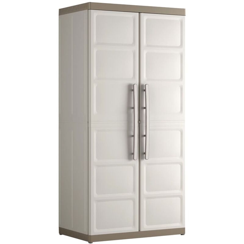 Siete alla ricerca di un mobile che vi aiuti a ottimizzare i vostri spazi? Non indulgete oltre, questo compatto e pratico armadietto con scaffali Excellence XL della Keter farà sicuramente al caso vostro! Con un elegante design a colori contrastanti, questo mobile sarà sicuramente un colpo d'occhio in qualsiasi stanza. Grazie alla capacità di carico massima di 25 kg per ciascun ripiano, l'armadietto risulta particolarmente adatto per la conservazione di oggetti voluminosi e dal peso elevato. Dotato di 4 ripiani regolabili e ante con serratura dotate di maniglie ergonomiche, questo armadietto alto risulta perfetto per riporre in modo sicuro una varietà di oggetti. Fissare l'armadio al muro (viti e tasselli non sono inclusi). Scegliere il tassello in base alla superficie. Colore: Beige e talpa Materiale: Polipropilene Dimensioni: 89 x 54 x 182 cm (L x P x A) Con 4 ripiani regolabili Capacità di carico del ripiano (ciascuno): 25 kg Ante con serratura con maniglie ergonomiche Facile da