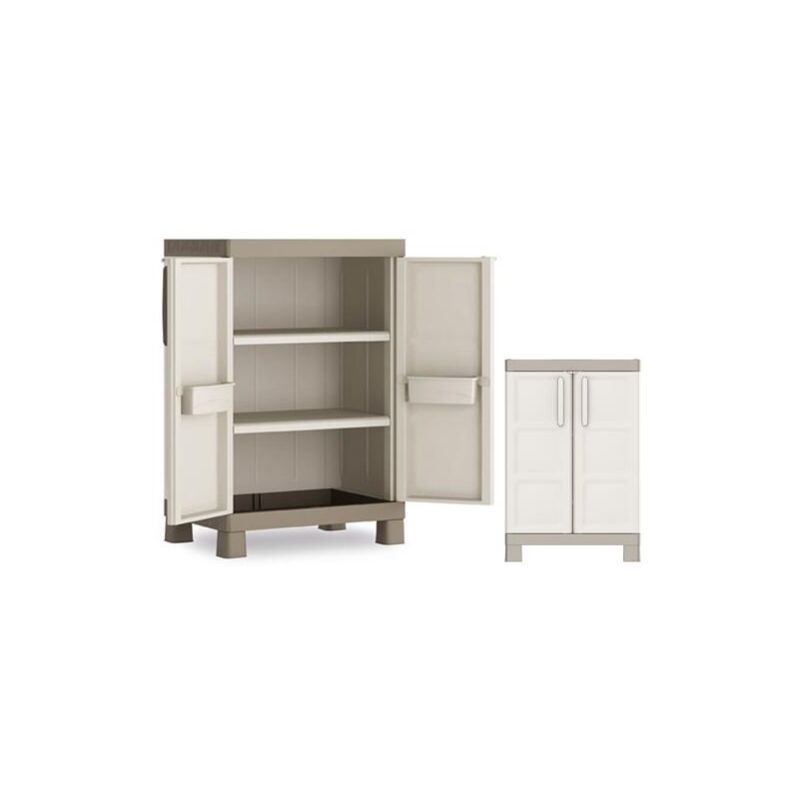ARMADIO RESINA BASSO 2 RIPIANI "EXCELLENCE KETER" BEIGE/TORT.L65 P45 H97 L. x P. x H.: 65x45x97 cm. Colore: Beige/Tortora Armadio in resina - Porte chiudibili con serratura - Facile da assemblare - Piedini rialzati - 2 ripiani regolabili con una portata di 15 kg ciascuno