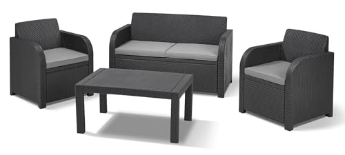 Keter Carolina Lounge Set, Mobili da Giardino con Divano 2 Posti, 2 Poltrone e Tavolino, Grafite