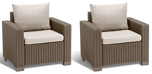 Keter Set 2 divanetti da esterno California adatti per arredare il giardino con cuscini inclusi, color cappuccino 83x68x71 cm