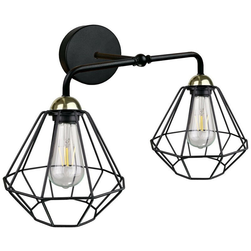 Keter Lighting - 1407 Lampada da parete Foskal nera, 24 cm, 2x E27 | Finitura: nero | Altezza: 30 cm | Lunghezza: 24 cm | Larghezza: 46 cm | Tipo di lampada: E27 | N. di lampade: 2 | Lampadina inclusa: no | Dimmerabile: Sì - Sono necessarie lampadine dimmerabili | Potenza (max): 60 W